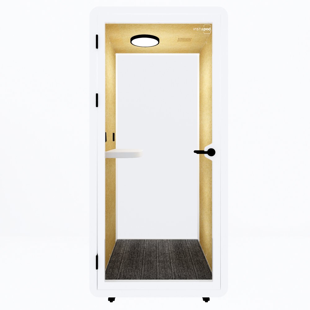 The Numero Series – InstaPod Solo is a compact indoor office pod designed for focused work, phone calls, and online meetings. This innovative silence pod features a modern white exterior and a light grey interior, blending seamlessly into any workspace. With its tempered glass doors, non-slip carpeting, and smooth casters, it offers a stylish and functional solution for privacy and productivity. Equipped with energy-efficient LED lighting, a universal power socket, USB Type A and Type C fast-charging ports, and built-in ventilation, the InstaPod Solo creates a quiet, comfortable environment for uninterrupted work in any office or home setting.